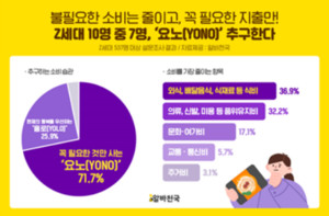 욜로(YOLO)? 이젠 요노(YONO)!한때 ‘욜로(YOLO:You Only Live Once)’는 젊은 세대를 대표하는 소비트렌드였다. ‘한 번뿐인 인생, 후회 없이 즐기자’라는 모토를 가진 욜로족은 오마카세, 호캉스, 명품 구매에 돈을 아끼지 않으며 그 순간의 즐거움을 추구하는 소비를 보였다. 이는 불확실한 미래에 대한 인식이 강화되던 중 현재의 삶에 집중하고자 하는 사람들이 늘어나고 개인의 삶의 질과 경험을 중시하는 문화가 확산됨에 따라 나타난 현상이었다.하지만 경제불황과 고물가 시대가 이어지면서 욜로 소비는 점차 새로운 트렌