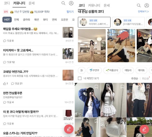 1. 커뮤니티 중심의 서비스: 에이블리는 단순한 제품 리뷰를 넘어서, 사용자들이 자신의 스타일을 공유하고 소비자들 간에 취향과 감성을 공유하는 공간으로서의 커뮤니티를 제공한다. 이를 통해 사용자들은 직접 코디한 착장 사진을 올리고 추천하며, 의견을 나누는 등 SNS의 본질을 그대로 가져온다.